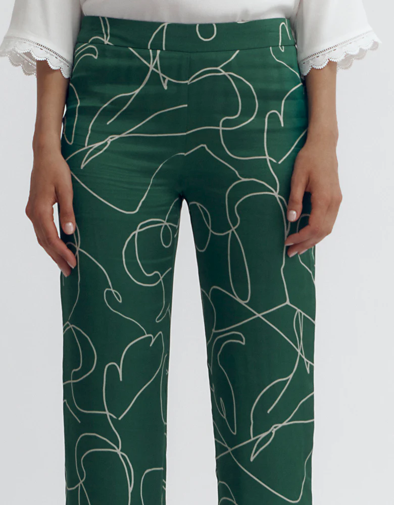 Souple, confortable et élégant, notre pantalon fluide se pare d'un dessin ligne très tendance, associé à un vert profond et printanier. Un ajustement parfait grâce à sa taille élastiquée au dos, qui ne manque néanmoins pas de sophistication grâce à la ceinture plate à l'avant.
