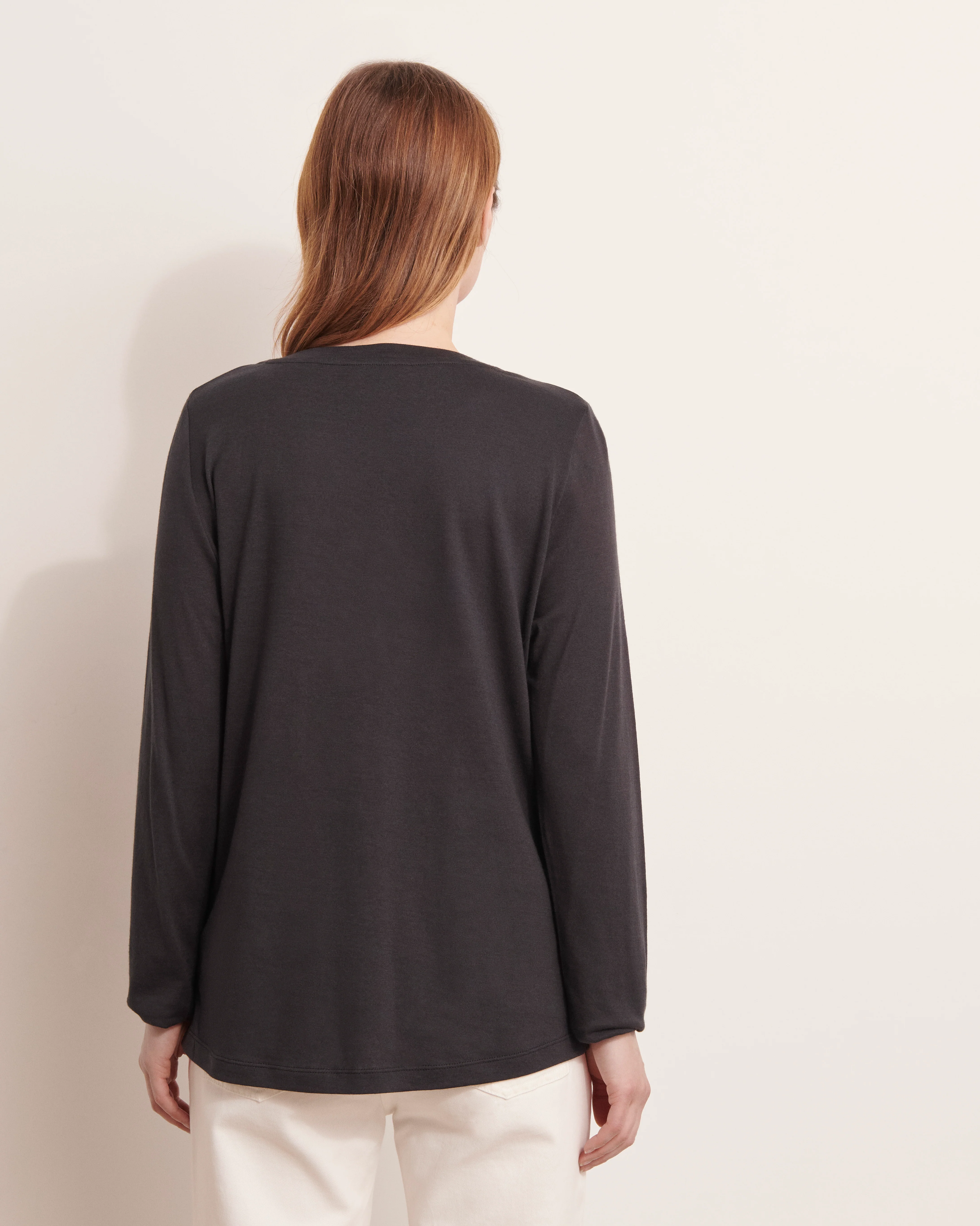 Les manches longues offrent une allure élégante tout en assurant un confort optimal au quotidien. La broderie discrète du sigle CD, ton sur ton sur la poitrine, souligne la modernité et la signature Devernois avec subtilité.
