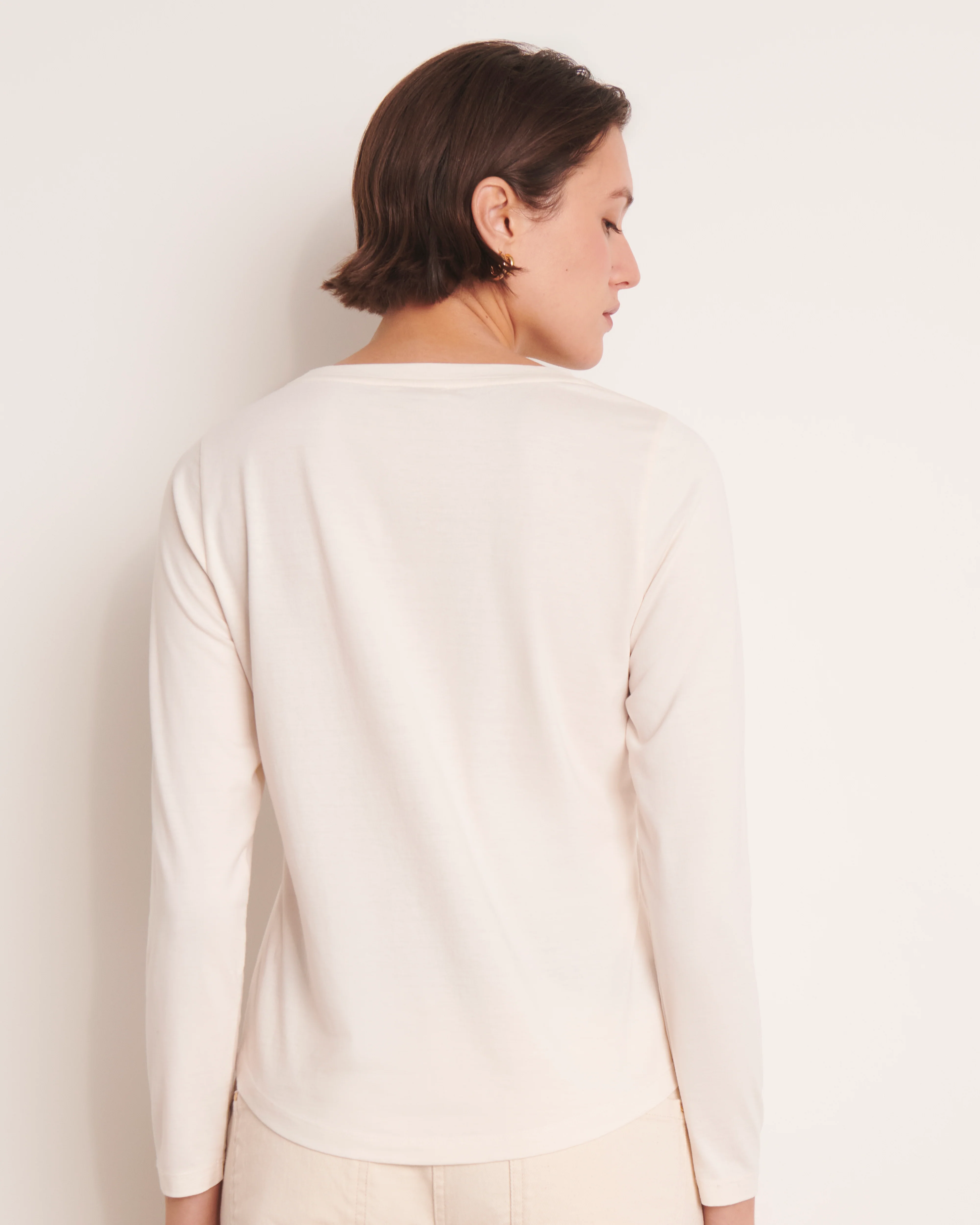 Ce tee-shirt manches longues séduit par son élégance sobre et contemporaine.
